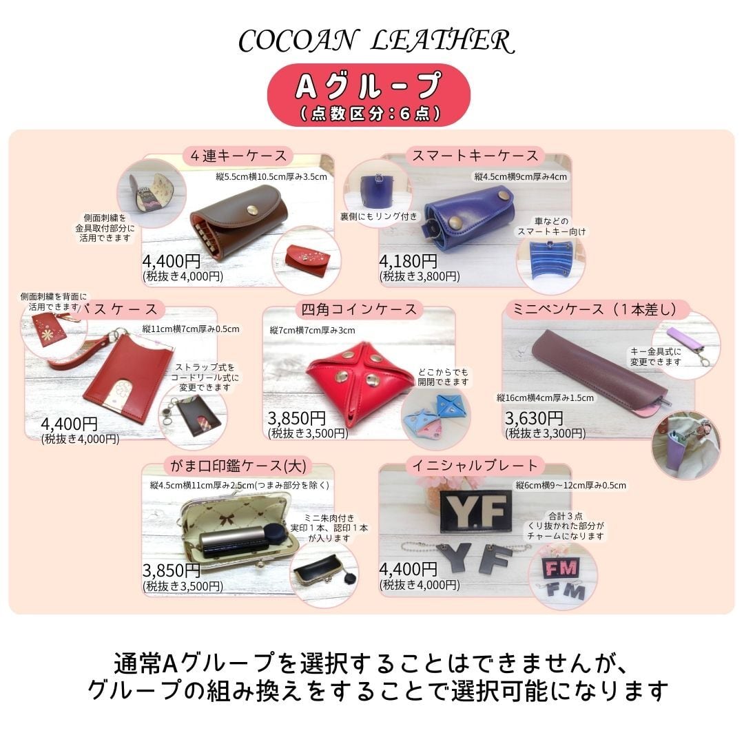 ・ひび割れなどが原因で制作が困難な場合、作品数が減少する場合があります。減少分は本革を使用して制作致します。