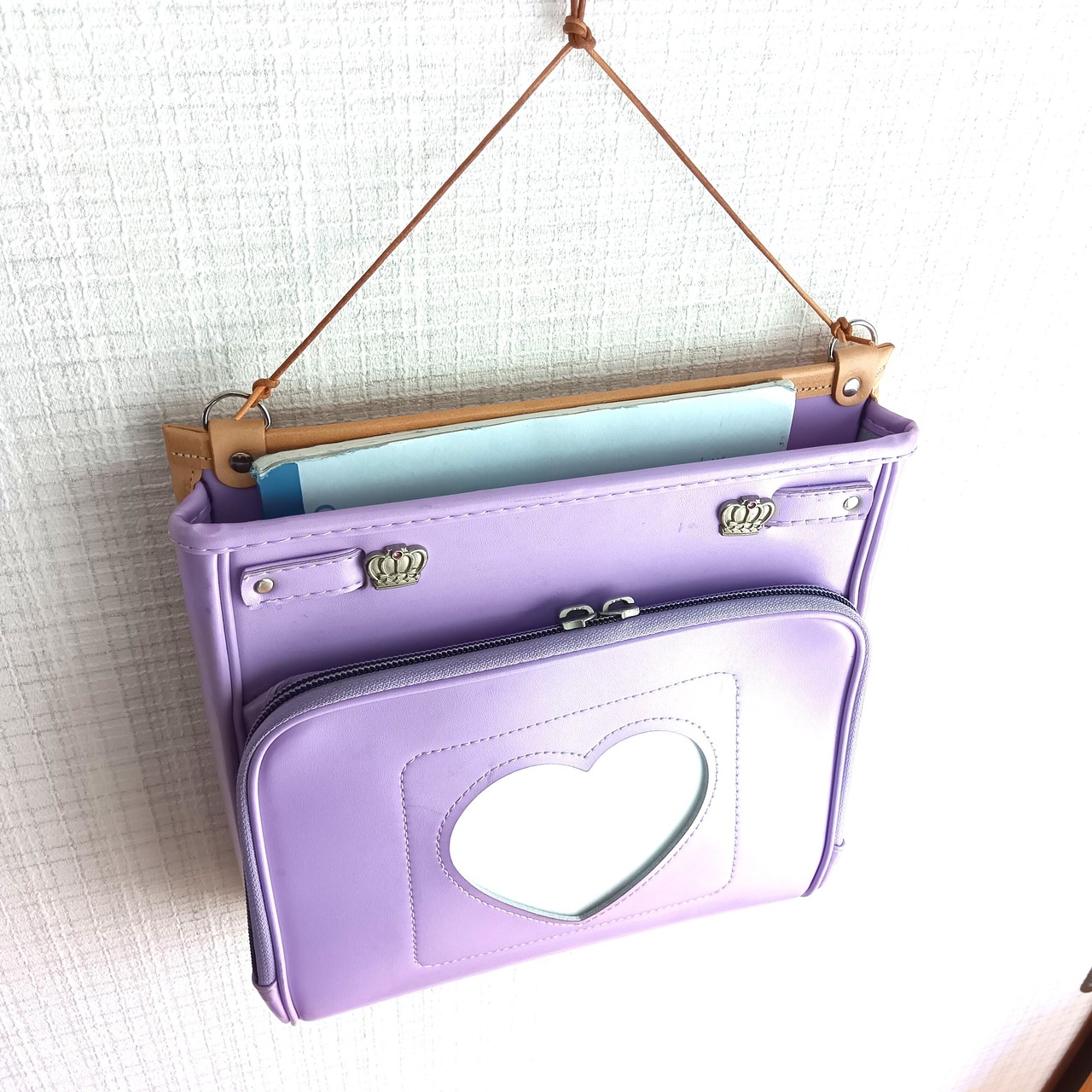 ランドセルの内ポケット部分をしたフォールポケット(壁掛け用収納)になります。