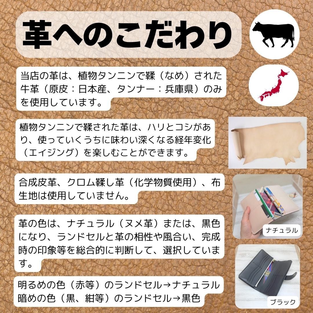 ・ひび割れなどが原因で制作が困難な場合、作品数が減少する場合があります。減少分は本革を使用して制作致します。